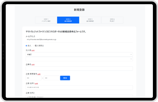 ご登録のメールアドレスに新規登録フォームが届きますので、基本情報をご入力ください。